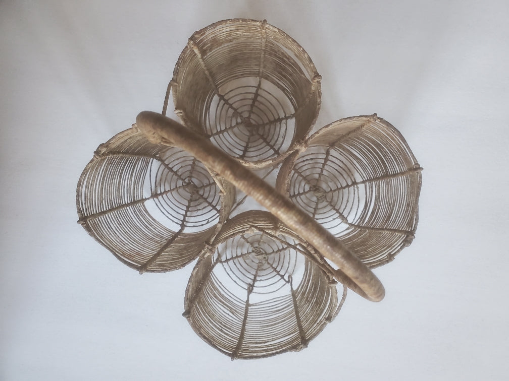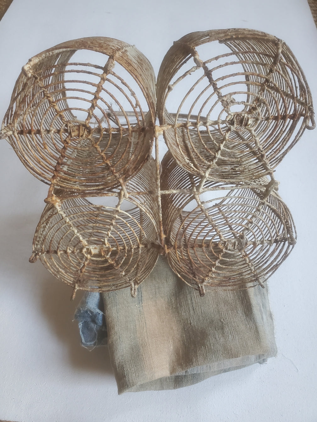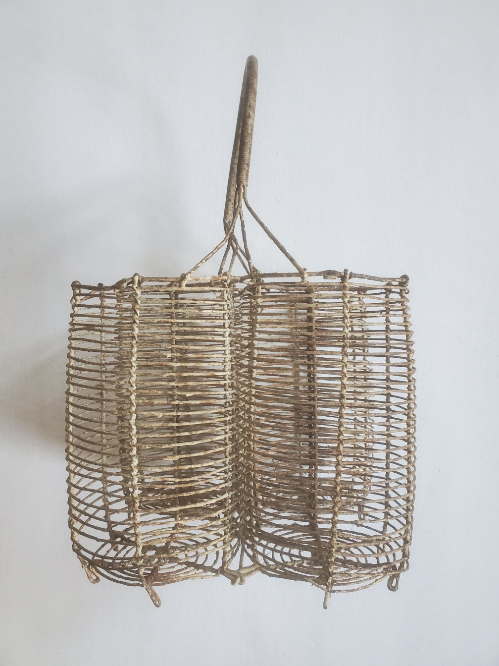 Très bel objet en fil de fer représentant un porte-bouteille, fabriqué à partir des années 1900 avec un joli travail de torsades.